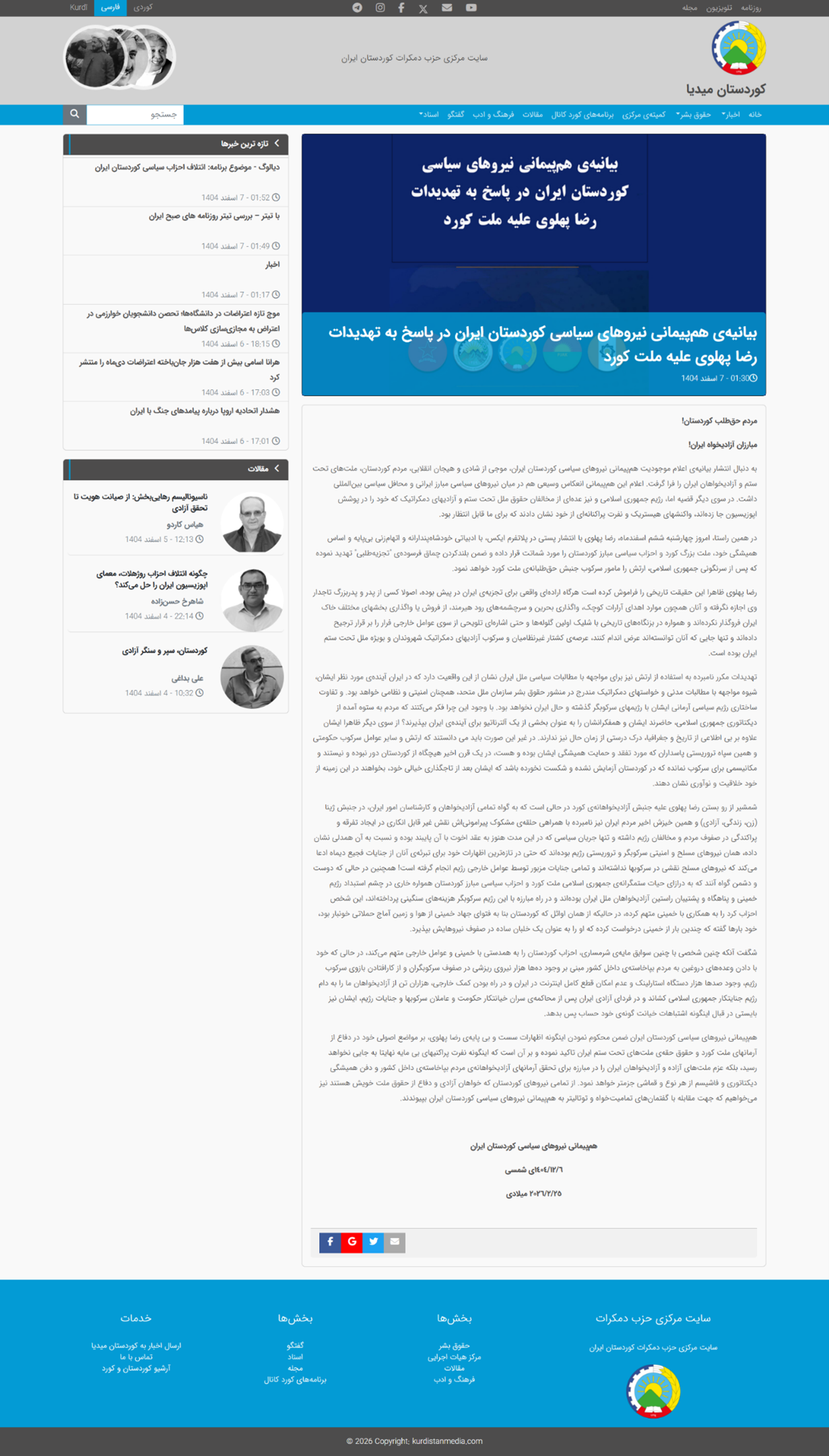 بازداشت بیش از ۵۰هزار نفر در جریان خونینترین سرکوب روز پنجشنبه ۲۵ دی ۱۴۰۴ در نوزدهمین روز اعتراضات و قیام سراسری مردم ایران سازمان مجاهدین خلق ایران اعلام کرد که آمار کل بازداشتها و دستگیریهای مرتبط با قیام سراسری در کشور، از روز ۷ تا ۲۴ دیماه ۱۴۰۴، در مجموع از ۵۰هزار نفر فراتر رفته است. بر اساس این گزارش، شماری از بازداشتشدگان بهصورت فلهای در صحنه اعتراضات دستگیر و پس از مدتی آزاد شدهاند […]